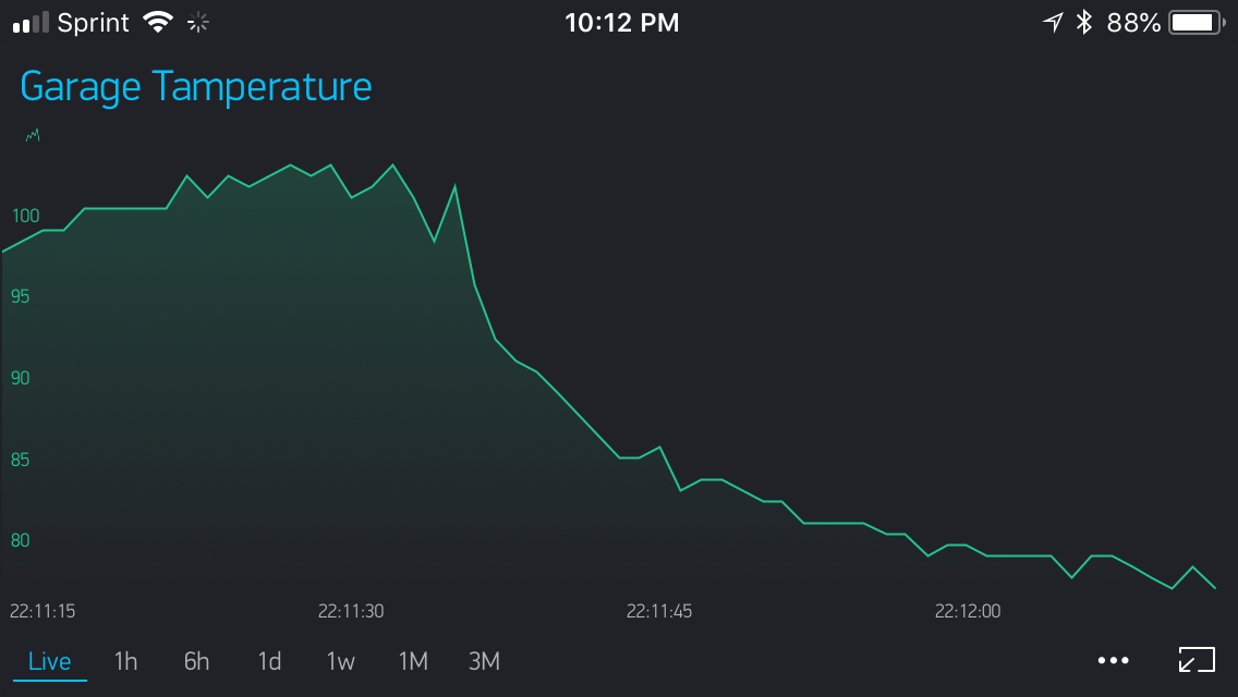 I mentioned earlier that I was going to use a virtual pin to transmit the temperature value from the device to the app. To do so, all I had to do is call the following line of code periodically within my firmware. In this case, temp, is a float that holds the most recent temperature value read from the sensor.