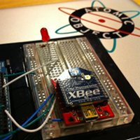 We ordered our XBee radios and XBee Explorer USB boards from SparkFun. The Explorer USB boards made it very easy to plug in to our MacBook Pros and get up and running quickly. An XBee Arduino shield would have worked well once we concluded we needed a microcontroller involved, but they are relatively simple to wire up without one.