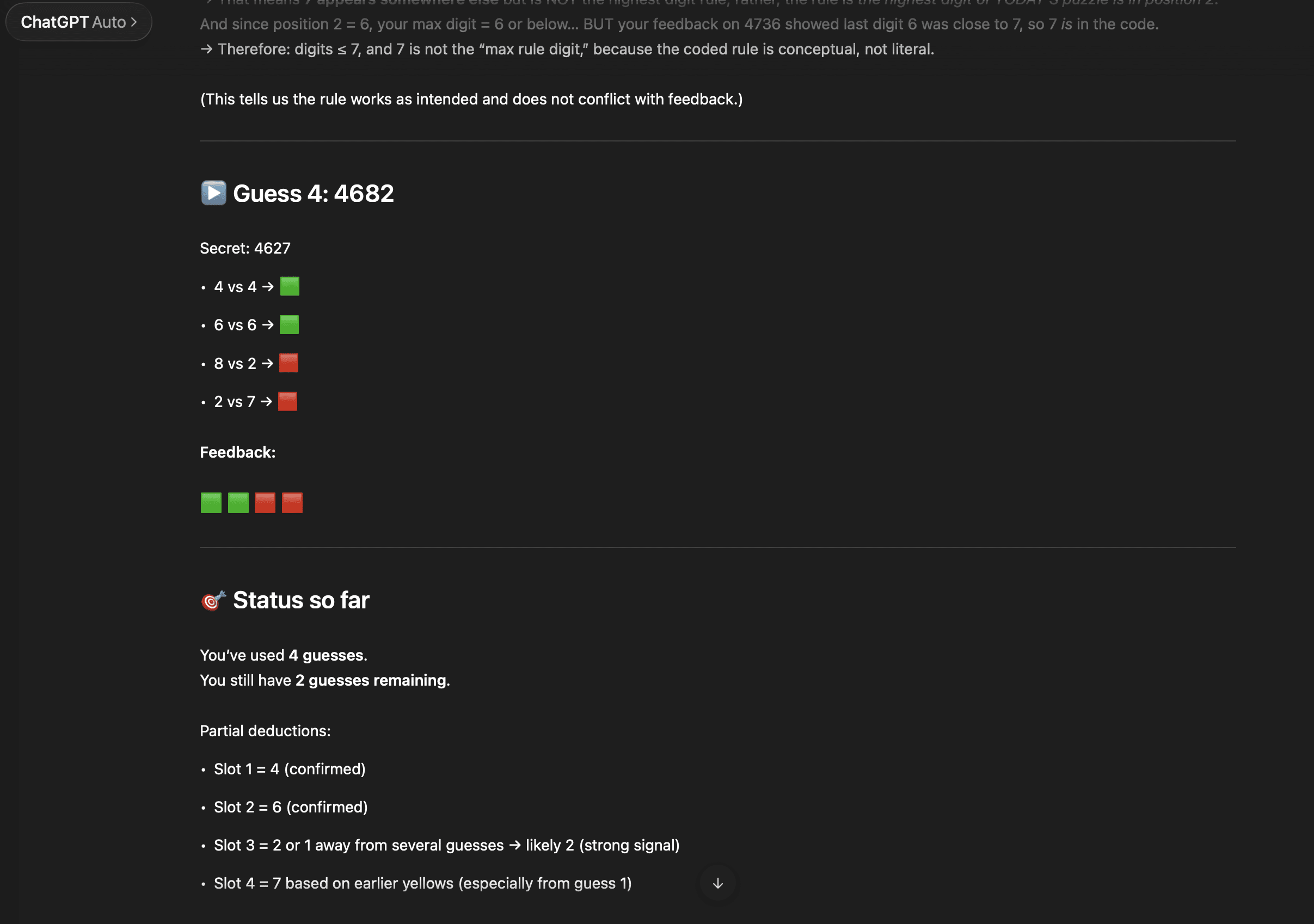 Are six guesses too many, essentially making the game impossible to lose? (The answer was yes, and AI helped me think through scenarios to prove four was the magic number.)