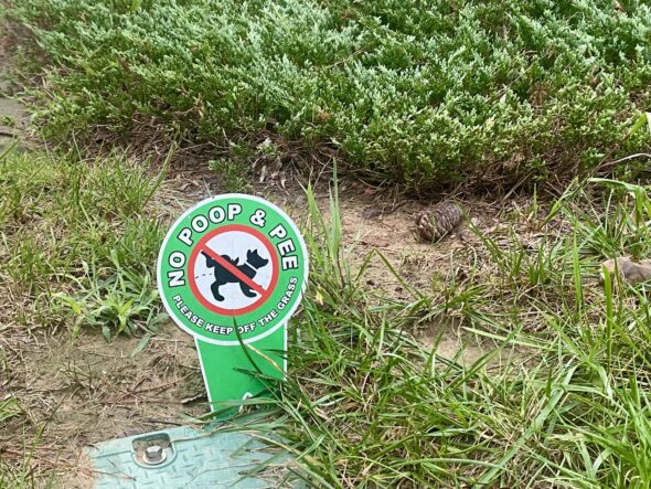 On my walk, I noticed a yard with several signs aimed at keeping pets from using the lawn as their bathroom. One of the signs used a dog icon to get the point across, but the design was a little awkward. It included an odd rendering of a dog and a red slash through it it which felt more distracting than helpful. Instead of making the message clearer, the icon actually slowed me down as I tried to figure out what it meant. Icons are best when they are simple and easily recognizable.