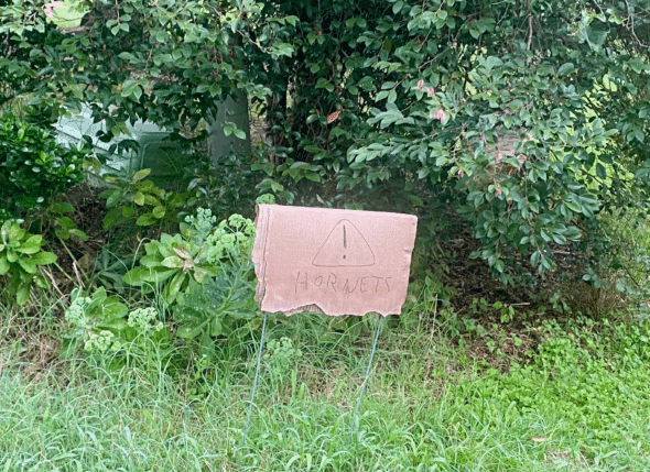 On the hornets sign, the designer chose a symbol almost everyone recognizes: a warning icon. Because of that choice, I instantly understood I needed to use caution. They could have gone in lots of different directions, but by leaning on something familiar, the message was clear to anyone passing by.