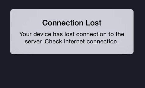 message: "Your device has lost connection to the server. Check that you have a valid internet connection.",