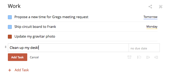 Todoist is for are what I call minor-miscellaneous items, things like: “Propose a new time for Greg’s meeting request,” “Ship circuit board to Frank,” or “Check the pressure in my tires”.