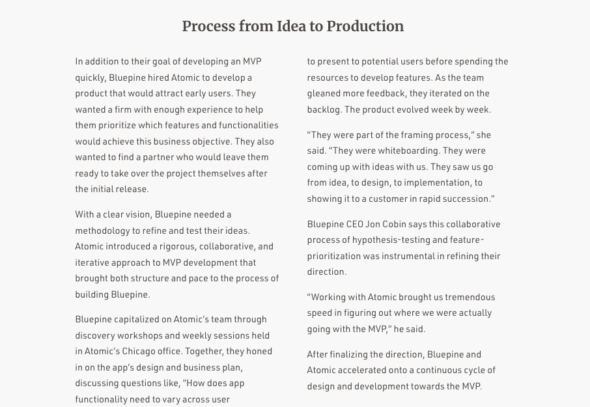In my first year at Atomic Object as a marketing specialist, I inherited the task of writing case studies for our projects. A good case study documents how a real client challenge was solved, what it took to get there, and, of course, why that work mattered to the client’s business.